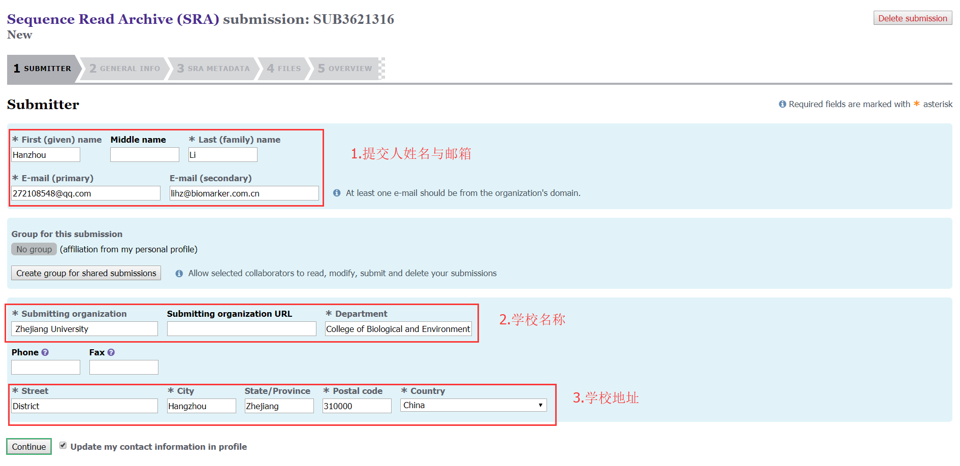 第二步:填寫提交人的個(gè)人信息和單位信息;