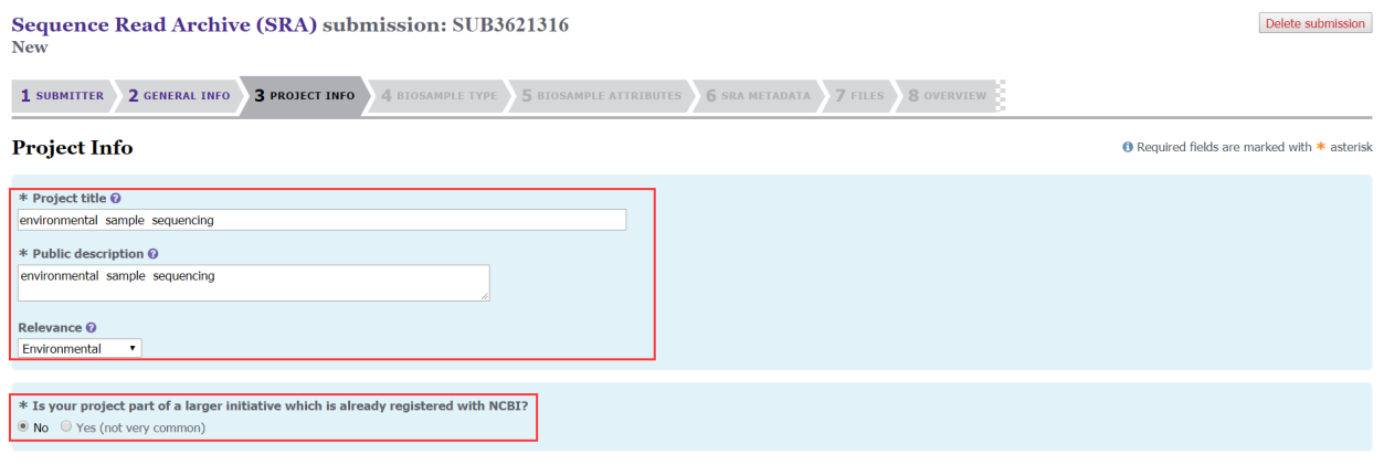 第三步:填寫B(tài)ioSample、BioProject和數(shù)據(jù)釋放時(shí)間(之前沒有創(chuàng)建BioSample、BioProject可以選擇NO);