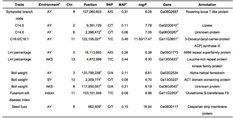 3. 亞洲棉的全基因組關(guān)聯(lián)分析(GWAS)