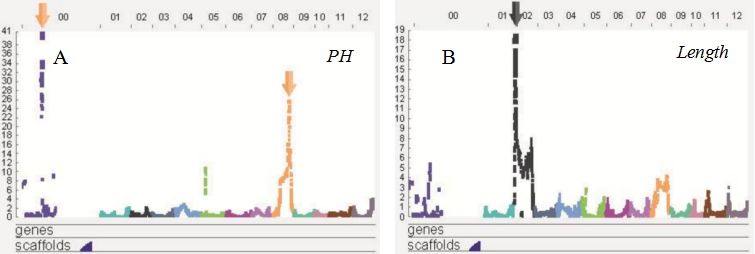 圖2? ? ? A)果實(shí)酸度和? ? ?B)果實(shí)長(zhǎng)度定位結(jié)果展示