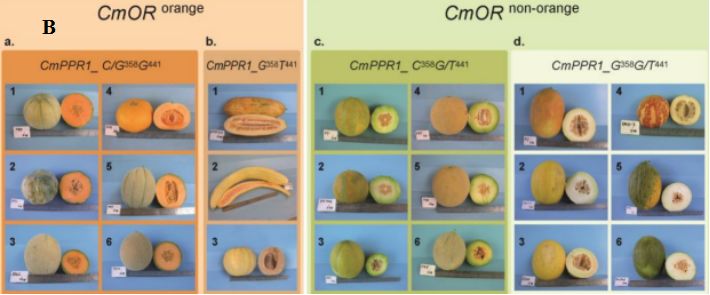 自然群體:148個(gè)甜瓜品種(具有多種果肉顏色)