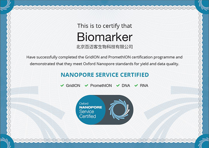 北京百邁客生物科技有限公司是中國大陸一家全部通過?PromthION/GridION平臺及DNA/RNA樣本官方認證的公司。