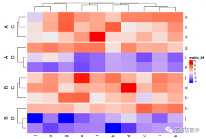 Heatmap(mat,?split?=?rep(c(“A”,?“B”),?6))Heatmap(mat,?split?=?data.frame(rep(c(“A”,?“B”),?6),?rep(c(“C”,?“D”),?each?=?6)))