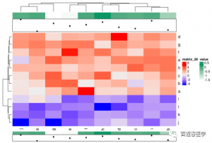 單個熱圖由熱圖主體和熱圖組件組成。 熱圖主體可以按行和列分割。 熱圖組件是標題,樹形圖,矩陣名稱和熱圖注釋,它們放在heamap體的四個側面上。