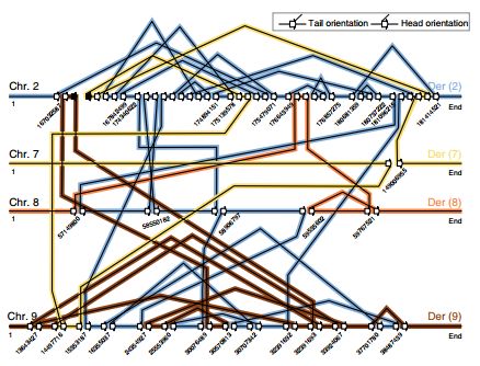 染色體碎裂即為一個染色體在復制過程被打碎,然后這些碎片以另一種順序重組(其實小編的理解就是一堆結(jié)構(gòu)變異集中發(fā)生了)。