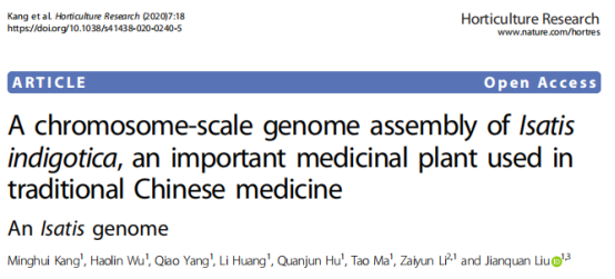 2020年2 月1日,四川大學(xué)生命科學(xué)學(xué)院劉建全課題組與華中農(nóng)業(yè)大學(xué)作物遺傳改良國家重點實驗室李再云課題組首次完成了菘藍(Isatis indigotica,2n=14)染色體級別基因組圖譜繪制。該研究利用Pacbio測序(140X)結(jié)合北京百邁客生物技術(shù)有限公司的Hi-C技術(shù)(284X)組裝得到294Mb高質(zhì)量基因組(contigN50=1.2Mb)。基于同源搜索和功能注釋,確定了該物種主要化合物(如吲哚類、萜類、黃酮、木脂素等物質(zhì))的可能生物合成通路和相關(guān)的候選基因。該研究強調(diào)了基因組測序在鑒定藥用植物代謝產(chǎn)物合成候選基因中的重要性,為今后十字花科植物比較基因組等研究提供了重要遺傳信息。