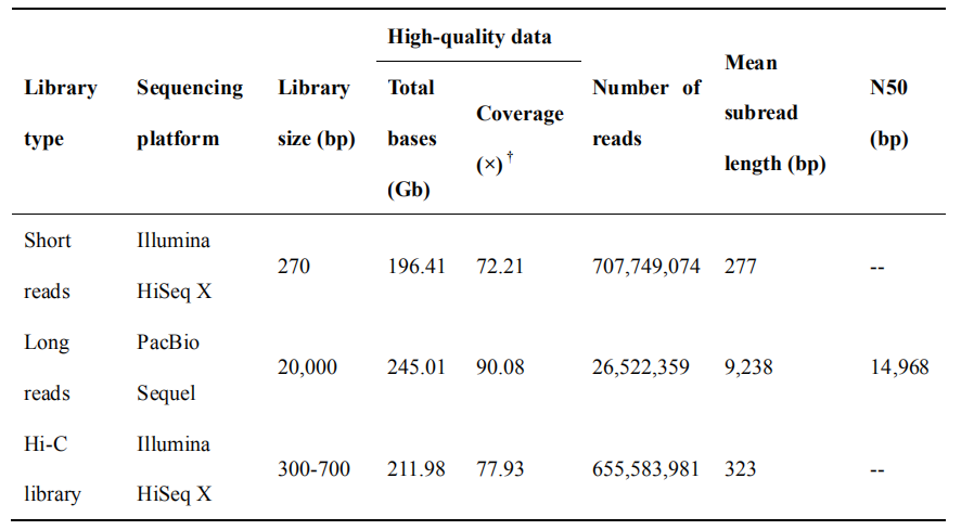 表1 中國真蛸基因組測序數(shù)據(jù)