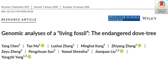 2020年1月四川大學(xué)劉建全團隊破譯了中國特有的瀕危物種珙桐(Davidia involucrata)基因組,相關(guān)成果發(fā)表在期刊Molecular Ecology Resources上。四川大學(xué)劉建全教授和楊勇志博士為該論文的通訊作者,陳陽和馬濤教授為并列一作。該研究利用單分子實時測序SMRT和北京百邁客生物技術(shù)有限公司的Hi-C技術(shù)組裝了一個高質(zhì)量、染色體體水平的珙桐基因組,研究發(fā)現(xiàn)苞片中光合作用相關(guān)基因幾乎缺失或表達減少,而抗菌、抗冷、抗水等抗逆相關(guān)基因在苞片中高度表達,突出了苞片在保護花和吸引授粉者中的重要作用。有效群體大小等研究分析了珙桐的生存機制和瀕危原因。在未來氣候持續(xù)變暖的背景下,研究結(jié)果為保護這獨特的瀕危物種提供了依據(jù)。