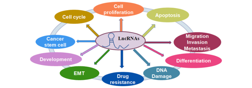 近年來,已證明非編碼RNA(ncRNA)參與結(jié)腸癌的發(fā)生和發(fā)展。眾所周知,ncRNA屬于一類轉(zhuǎn)錄本,主要被翻譯成蛋白質(zhì),它們在各種細胞和生理過程中也起著重要作用。長度超過200個核苷酸的長非編碼RNA(LncRNA)通常通過競爭內(nèi)源RNA(ceRNA)參與多種生物過程,包括細胞增殖,分化,發(fā)育,凋亡和轉(zhuǎn)移。LncRNA可以與RNA,DNA和蛋白質(zhì)相互作用,形成RNA-RNA,RNA-DNA,RNA-蛋白質(zhì)復合物,從而通過多種機制調(diào)節(jié)基因表達,包括轉(zhuǎn)錄調(diào)節(jié),mRNA穩(wěn)定性和翻譯。LncRNA可以充當?shù)鞍踪|(zhì)的引導分子,支架或誘餌分子,以回收蛋白質(zhì)或RNA。LncRNA也可以影響染色質(zhì)的結(jié)構(gòu)并調(diào)節(jié)基因表達。