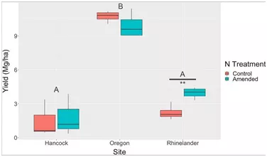 在萊茵蘭德試驗(yàn)區(qū),與對(duì)照試驗(yàn)區(qū)相比,施氮提高了柳枝稷的產(chǎn)量,但是在其他2個(gè)地區(qū)中沒有發(fā)現(xiàn)顯著差異;