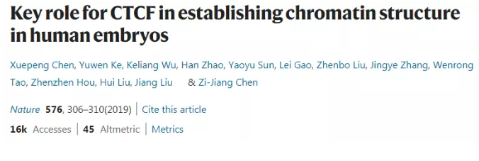文獻名稱:Key role for CTCF in establishing chromatin structure in human embryos