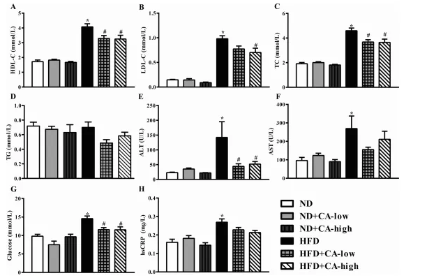 2.CA的補(bǔ)充影響hfd喂養(yǎng)小鼠的生化標(biāo)記物