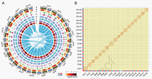 通過同源染色體比對(duì),鑒定到3,107,171 個(gè)SNPs、 500,018 個(gè)indels、57,643 個(gè)PAVs以及632 個(gè)倒位。高雜合度區(qū)域的進(jìn)化速度比其他區(qū)域更快。