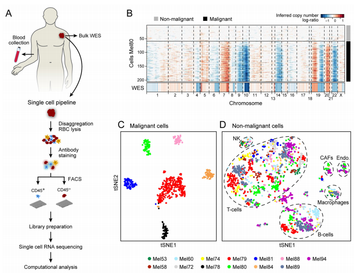 2、轉(zhuǎn)移性黑色素瘤的惡性細(xì)胞分析