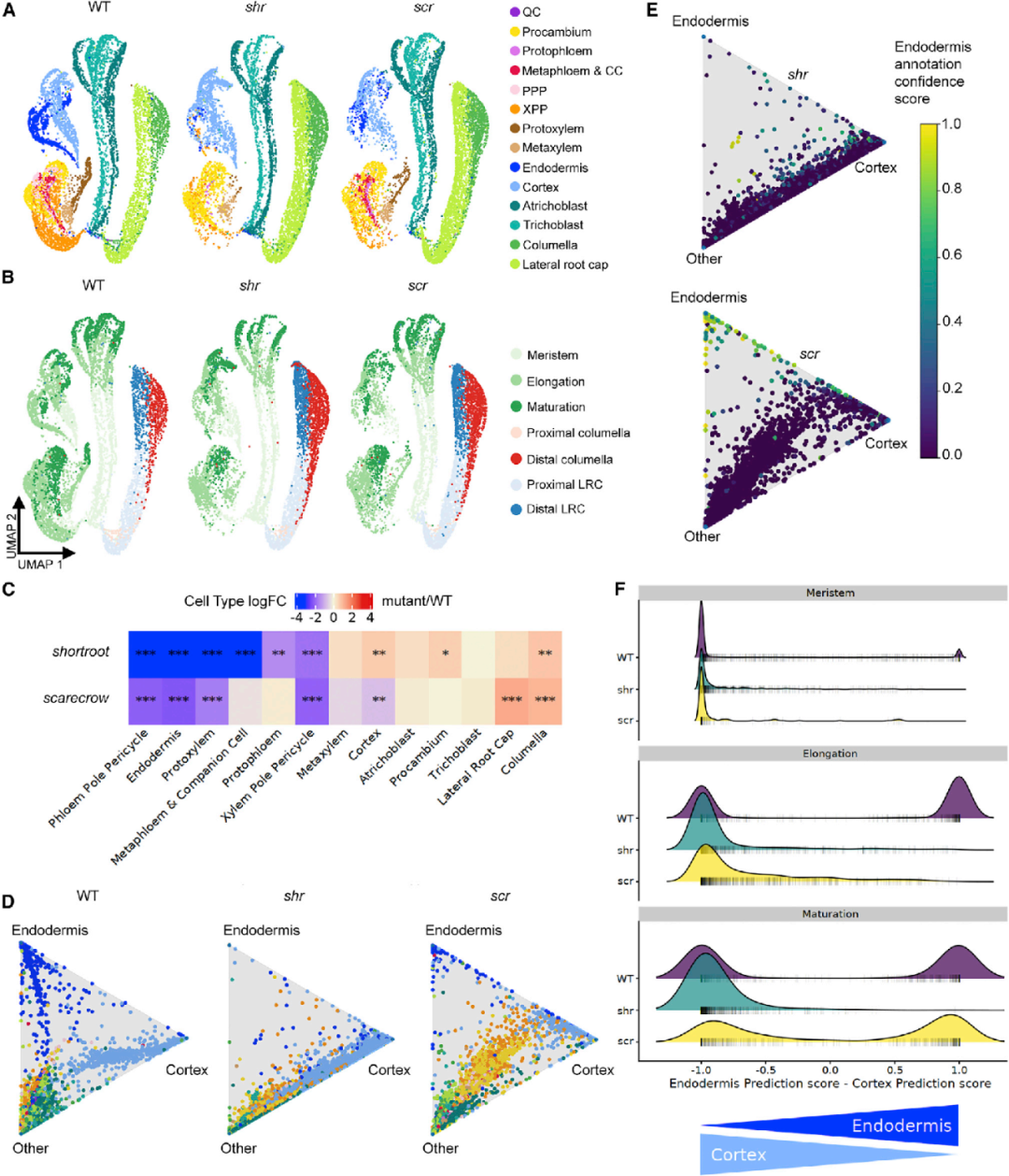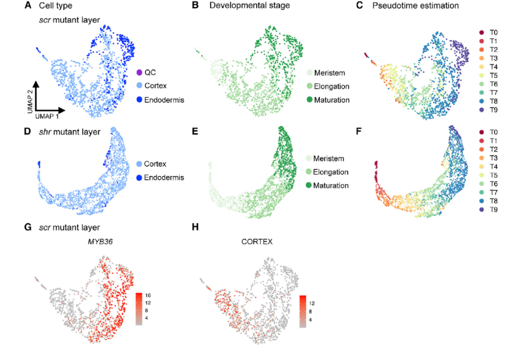 圖5 圖譜揭示了shr和scr突變體的細(xì)胞類(lèi)型豐度和特性變化