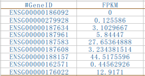 ???? 基因表達量文件 ,如果沒有預(yù)測的新基因,文件只需要提供gene ID 和表達量如下: