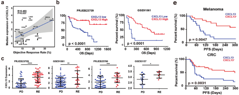 研究內(nèi)容:針對腫瘤特異性抗原(TSA)的個(gè)性化免疫療法可以在不損害正常組織的情況下產(chǎn)生有效和安全的抗腫瘤免疫反應(yīng),盡管新抗原疫苗已在臨床試驗(yàn)中顯示出治療效果,但從腫瘤突變中預(yù)測新抗原仍然具有挑戰(zhàn)性,宿主抗腫瘤免疫反應(yīng)選擇并激活識別腫瘤抗原的T細(xì)胞;因此用來自患者體內(nèi)這些天然存在的腫瘤抗原特異性T(Tas)細(xì)胞的T細(xì)胞受體改造的T細(xì)胞將靶向患者腫瘤中的TSA。本研究揭示了Tas 細(xì)胞的特點(diǎn)是腫瘤富集、腫瘤特異性克隆擴(kuò)增和新抗原特異性;評估了腫瘤中Tas細(xì)胞標(biāo)記物CXCL13的表達(dá)水平可能比來自免疫周期早期步驟的標(biāo)志物(如TMB)更jing q 地預(yù)測對ICB 的反應(yīng);并將CD200和ENTPD1分別鑒定為CD4+和CD8+Tas細(xì)胞的表面標(biāo)志物。
