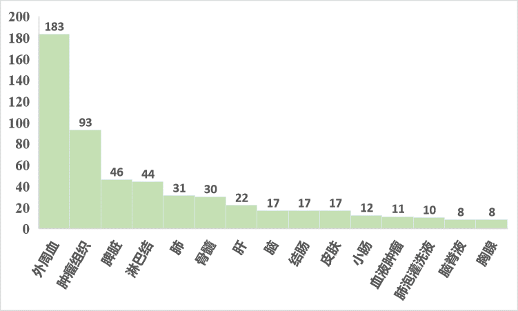 與圖2展示的類似,百邁客實(shí)測項(xiàng)目中血液樣本數(shù)量很多,占比超60%;血液樣本相較于組織樣本,無需進(jìn)行細(xì)胞解離,能夠避免細(xì)胞解離引起的細(xì)胞活性受損、細(xì)胞類型丟失等問題;尤其是臨床樣本,往往涉及到組織樣本獲取難度大的問題,患者治療后腫瘤組織取樣更是很多老師的困擾,因此取配對的血液樣本就成了一個(gè)合適的替代方案,在臨床監(jiān)測、標(biāo)志物診斷方面更是具有巨大的優(yōu)勢。