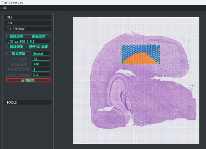 6)最后得到框選到的感興趣區(qū)域的聚類結(jié)果,點擊“ROI”切換為“瀏覽模式”可以通