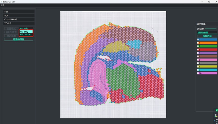 7)聚類圖片可以在TOOLS欄中進行保存。點擊圖畫模式可以選擇“僅保存HE”和“HE&Cluster”分別進行保存。