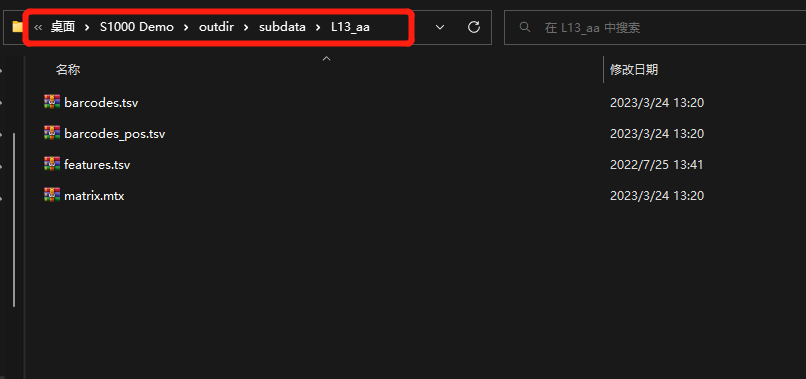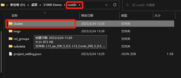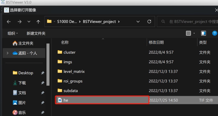 1)將官網(wǎng)下載到的BSTViewer_project文件夾數(shù)據(jù)(或者通過運行BSTMatrix 得到的BSTViewer_project 文件夾)存放到英文命名的文件夾之中;【包括各個級別分辨率矩陣文件,及BMChiper 或者官網(wǎng)下載的HE 染色圖片】可以同時在此文件夾下邊新建一個outdir 作為文件輸出路徑;
