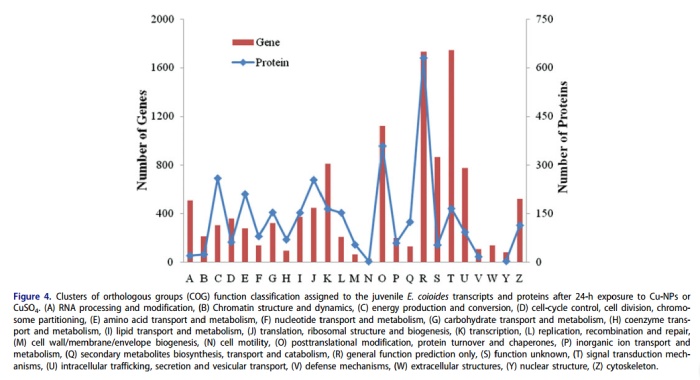 Epinephelus coioides(橙斑石斑魚),一種原生型雌雄同體的海洋魚類,在中國廣泛流行,因為其優(yōu)良的肉質(zhì)使其具有很高的商業(yè)價值。目前,E. coioides主要在漂浮網(wǎng)箱養(yǎng)殖,在自然環(huán)境中很容易就可以受環(huán)境污染影響。本研究結(jié)合生理分析,轉(zhuǎn)錄組和蛋白組分析研究納米銅或硫酸銅暴露下石斑魚體內(nèi)蛋白及基因的差異變化。
