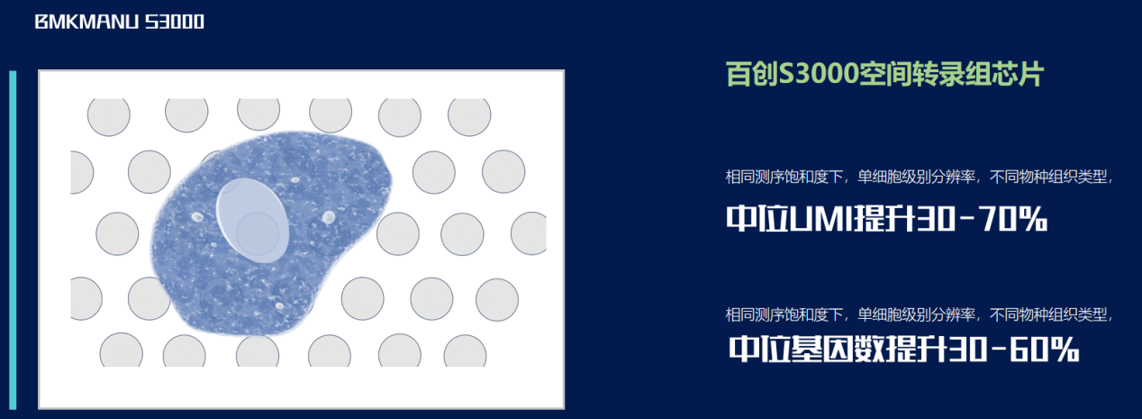相較于現(xiàn)在廣受市場認(rèn)可與好評的百創(chuàng)S1000轉(zhuǎn)錄組芯片,捕獲位點(diǎn)數(shù)提升近2倍,分辨率同樣提升近2倍