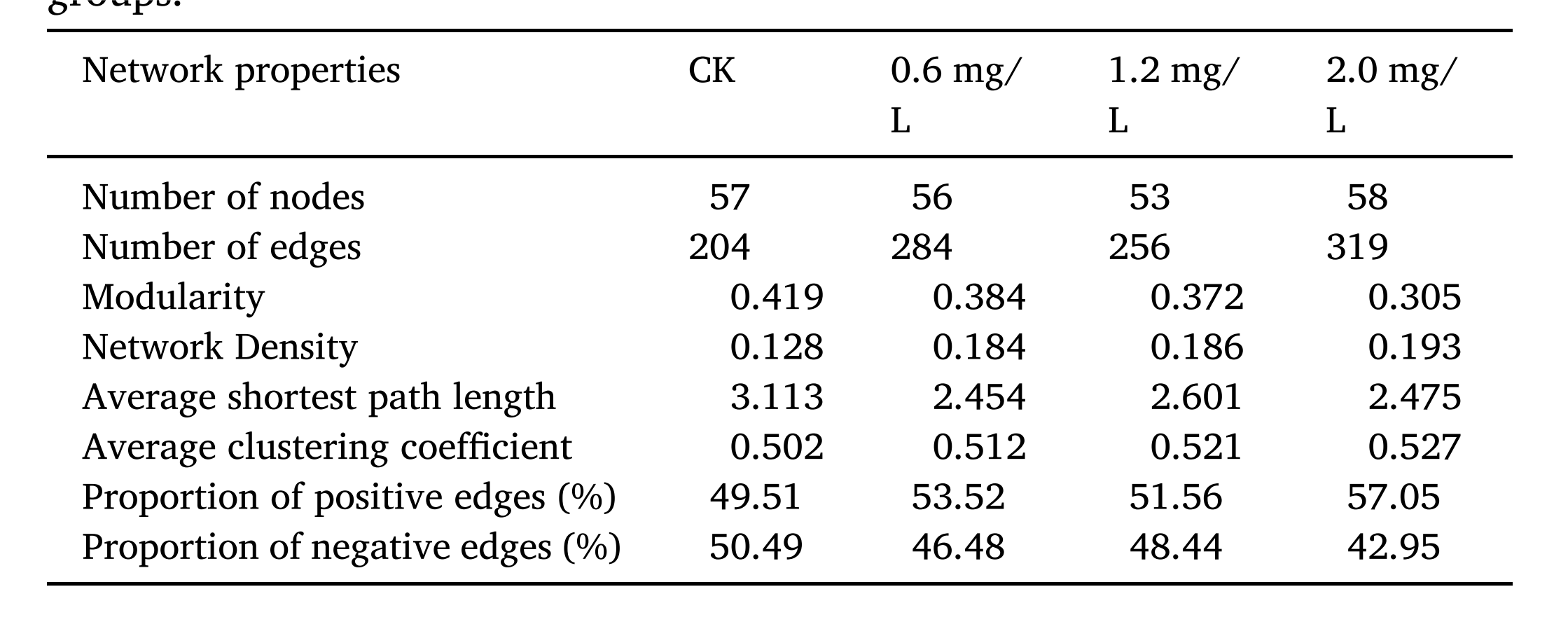 表1-不同處理組的微生物群落網(wǎng)絡(luò)的基本性質(zhì)