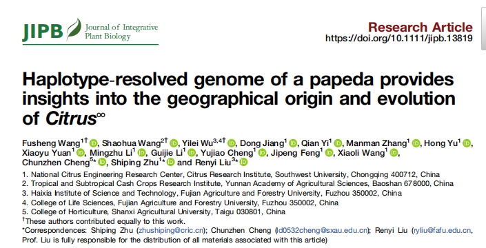 近日,西南大學(xué)柑桔研究所聯(lián)合云南省農(nóng)業(yè)科學(xué)院熱帶亞熱帶經(jīng)濟(jì)作物研究所、福建農(nóng)林大學(xué)、山西農(nóng)業(yè)大學(xué)等單位在Journal of Integrative Plant Biology發(fā)表題為“Haplotype-resolved genome of a papeda provides insights into the geographical origin and evolution of Citrus”的研究論文,為柑橘物種的起源和進(jìn)化提供了新的見解。