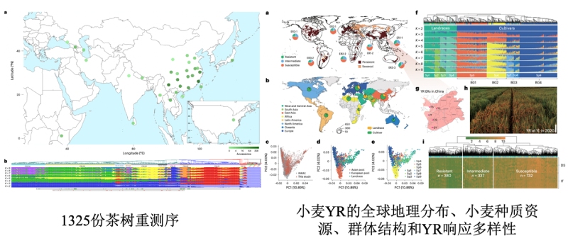 群體重測(cè)序與多組學(xué)(轉(zhuǎn)錄組、代謝組、表觀(guān)組等)的聯(lián)合應(yīng)用,是解析植物復(fù)雜性狀遺傳機(jī)制、挖掘優(yōu)異基因的核心技術(shù)范式,尤其在植物育種與物種演化研究中價(jià)值突出。例如,在水稻紋枯病抗性研究中,通過(guò)對(duì)178份商業(yè)水稻進(jìn)行測(cè)序和人工接種,結(jié)合GWAS分析與重測(cè)序,發(fā)現(xiàn)了天然優(yōu)勢(shì)等位基因SBRR1,并完成遺傳機(jī)制解析和基因功能驗(yàn)證;在小麥條銹病研究中,對(duì)來(lái)自全球2,191個(gè)小麥種質(zhì)的變異組數(shù)據(jù)和超過(guò)47,000條跨多種環(huán)境和病原菌品系的YR抗性數(shù)據(jù),利用GWAS分析分析抗性基因位點(diǎn),克隆抗性基因并評(píng)估其有效性;在1325份茶樹(shù)及其近緣種重測(cè)序研究中,揭示茶樹(shù)與其近緣種的遺傳分化、進(jìn)化瓶頸、種間基因滲入以及野生資源保護(hù)現(xiàn)狀,同時(shí)結(jié)合GWAS和mGWAS鑒定了葉片形態(tài)、兒茶素、咖啡因等農(nóng)藝性狀及風(fēng)味代謝物的關(guān)鍵候選基因;在甜橙的起源與在馴化研究中,收集測(cè)序226份柑橘材料,組裝了甜橙和酸橙的T2T基因組以及4個(gè)相關(guān)柑橘品種的基因組,明確甜橙起源于酸橙與柑橘的雜交。