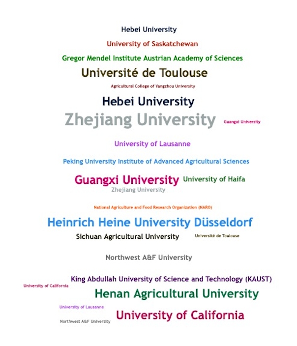 2025年Nature Genetics植物類(lèi)文章發(fā)表單位以中國(guó)科研機(jī)構(gòu)為主導(dǎo),在全球39篇植物科學(xué)領(lǐng)域的文章中,第一單位來(lái)自中國(guó)的文章達(dá)30篇,占總數(shù)的約77%。核心單位包括南京農(nóng)業(yè)大學(xué)、華中農(nóng)業(yè)大學(xué)、中國(guó)農(nóng)業(yè)大學(xué)、浙江大學(xué)、中國(guó)農(nóng)業(yè)科學(xué)院棉花研究所、北京大學(xué)現(xiàn)代農(nóng)業(yè)研究院等;國(guó)際合作方面,加州大學(xué)戴維斯分校、以色列海法大學(xué)、比利時(shí)根特大學(xué)、澳大利亞莫納什大學(xué)等機(jī)構(gòu)較活躍。