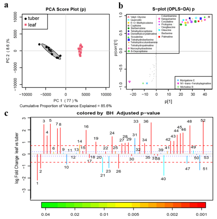 延胡索提取物的塊莖和葉組QTOF-MS數(shù)據(jù)的代謝組學(xué)多元分析