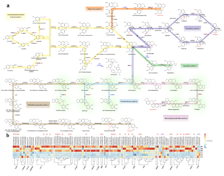 對合成原小檗堿型芐基異喹啉生物堿的相關(guān)基因進行了挖掘,為后期利用合成生物學(xué)與植物代謝工程生產(chǎn)延胡索中具有鎮(zhèn)痛效果的痕量化合物奠定了基礎(chǔ)。